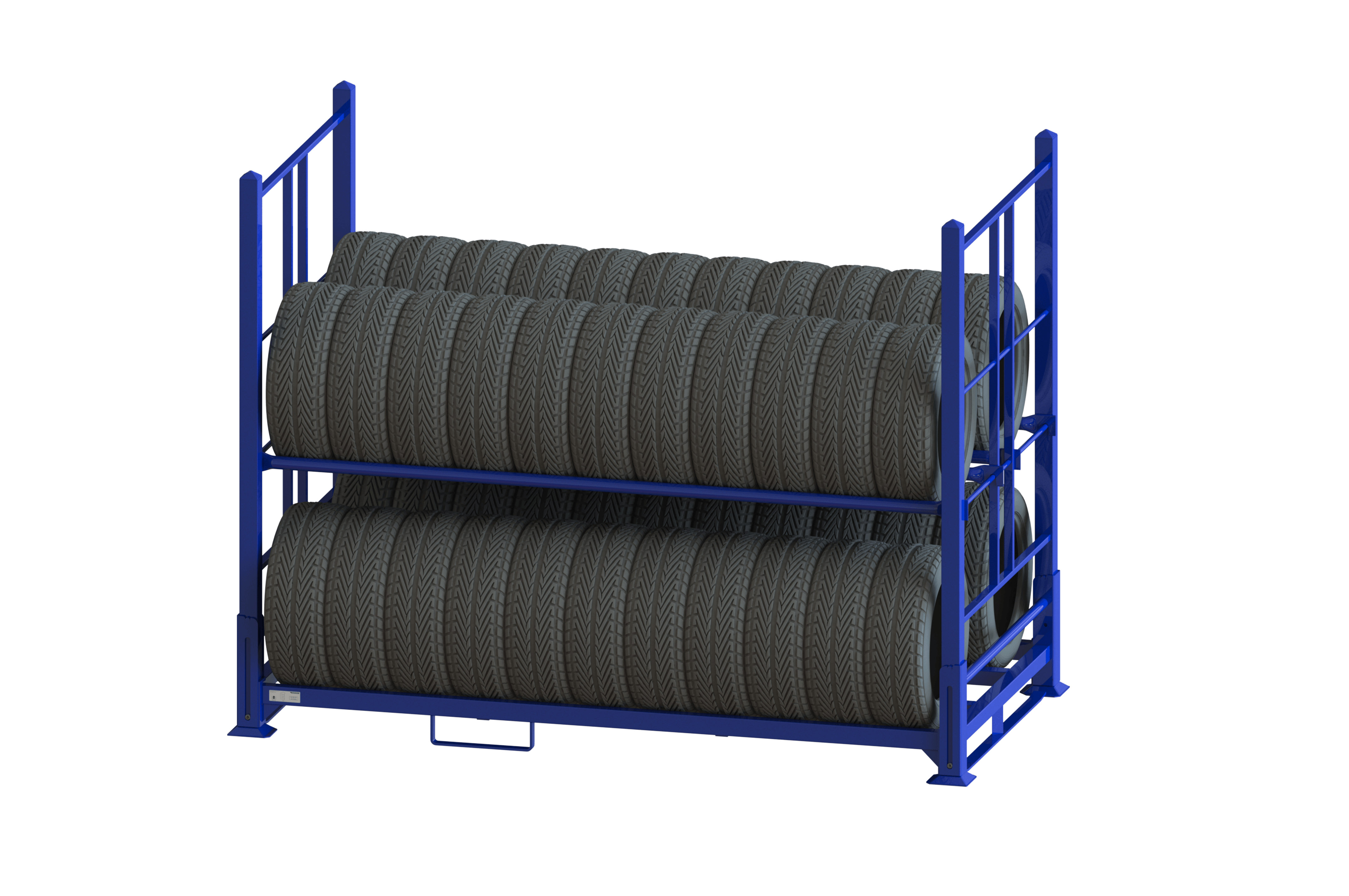 The usually foldable storage racks are used in the tire industry by manufacturers and producers, logistics companies such as contract and transport logistics companies, distribution companies such as tire wholesalers and tire retailers as well as workshops, but also rim manufacturers and complete wheel fitters.